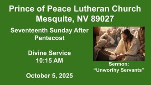 We are surrounded by “destruction and violence” (Hab. 1:3) because of the Law “is paralyzed, and justice never goes forth” (Hab. 1:4). In fact, the Law cannot rescue us from our enemies; it is our fiercest enemy of all. Therefore, not by sight, experience or feeling, nor by works, “the righteous shall live by his faith” (Hab. 2:4). “Temptations to sin are sure to come” (Luke 17:1), but as often as we sin, the LORD rebukes us, turns us to repentance and forgives us. We pray that He would thus “increase our faith” (Luke 17:5). And indeed, He does! Though we are His “unworthy servants” (Luke 17:10), He prepares His Supper for us, dresses us properly and gives us His body and blood to eat and drink. He appoints pastors for us, “by the will of God according to the promise of the life that is in Christ Jesus” (2 Tim. 1:1). For the Gospel brings “life and immortality to light” (2 Tim. 1:10). This we believe. Therefore, “follow the pattern of the sound words that you have heard,” by which He guards you “in the faith and love that are in Christ Jesus” (2 Tim. 1:13).