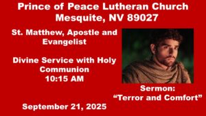We are surrounded by “destruction and violence” (Hab. 1:3) because of the Law “is paralyzed, and justice never goes forth” (Hab. 1:4). In fact, the Law cannot rescue us from our enemies; it is our fiercest enemy of all. Therefore, not by sight, experience or feeling, nor by works, “the righteous shall live by his faith” (Hab. 2:4). “Temptations to sin are sure to come” (Luke 17:1), but as often as we sin, the LORD rebukes us, turns us to repentance and forgives us. We pray that He would thus “increase our faith” (Luke 17:5). And indeed, He does! Though we are His “unworthy servants” (Luke 17:10), He prepares His Supper for us, dresses us properly and gives us His body and blood to eat and drink. He appoints pastors for us, “by the will of God according to the promise of the life that is in Christ Jesus” (2 Tim. 1:1). For the Gospel brings “life and immortality to light” (2 Tim. 1:10). This we believe. Therefore, “follow the pattern of the sound words that you have heard,” by which He guards you “in the faith and love that are in Christ Jesus” (2 Tim. 1:13).